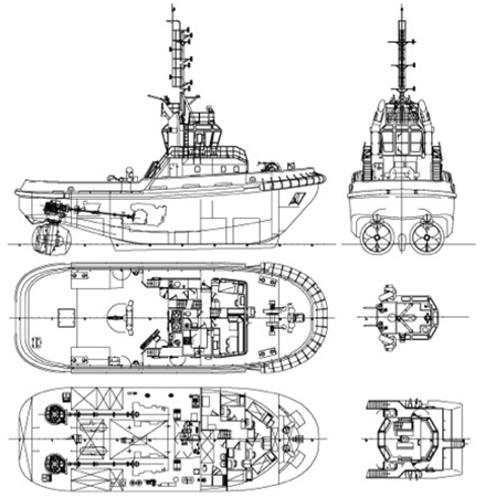 Russia’s Pella Shipyard advertises a range of five ASD tugs. Their model 90600 has proven popular with satisfied customers returning for sister ships. Currently the yards has one of these handy-sized 25.4 by 8.8-meter tugs under construction for the Grifon Company.