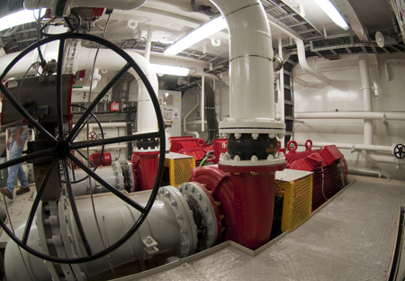 After eleven months in service the thruster room is as clean as the day the ship was delivered.