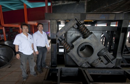“We hire a new crew to build each dredge,” explained Khun Songpon, “My father, Yongyut Junsiri, trains them as they build the dredge then the same crew operates it in Indonesia. They built it so they know how to care for it and how to fix it when necessary.”