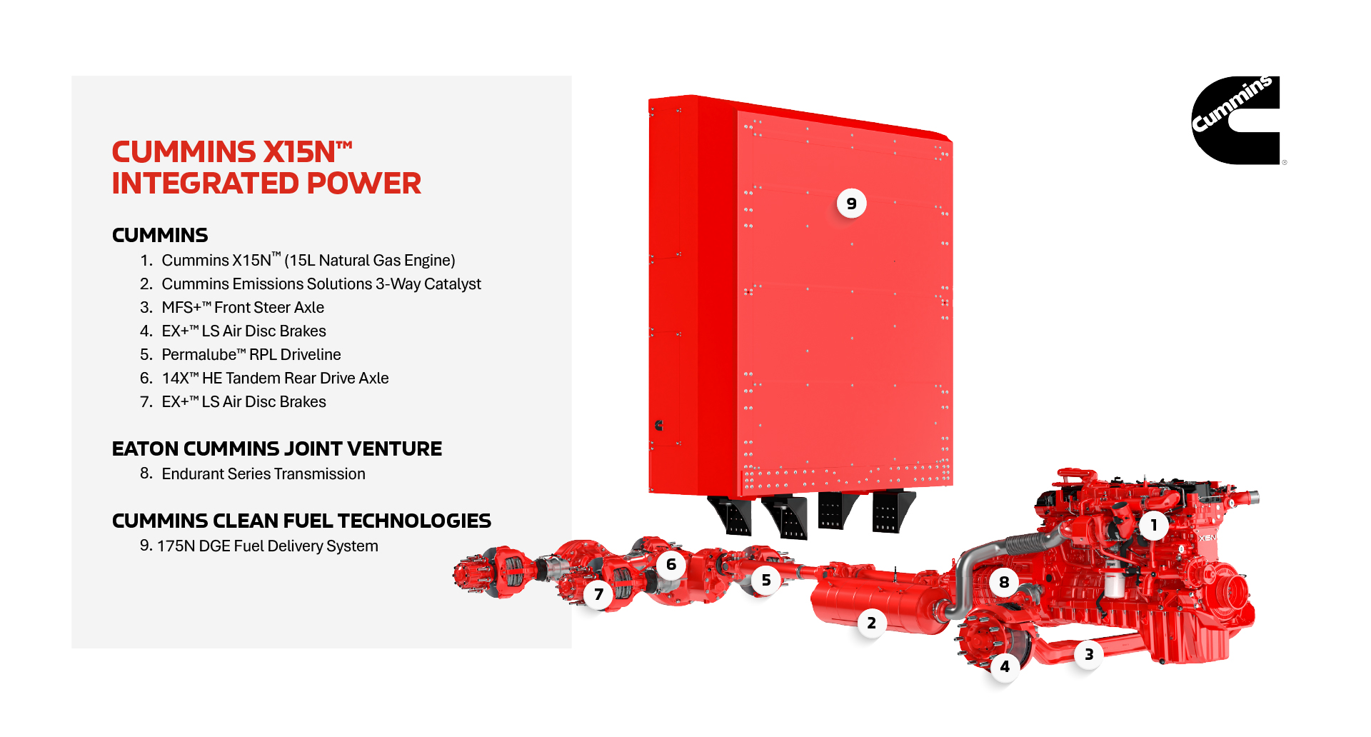 By optimizing factors like gear and axle ratios, Cummins Integrated Power maximizes fuel economy. Further, the integrated, fuel-agnostic design reduces parts proliferation and OEM integration, thus improving the total cost of ownership.