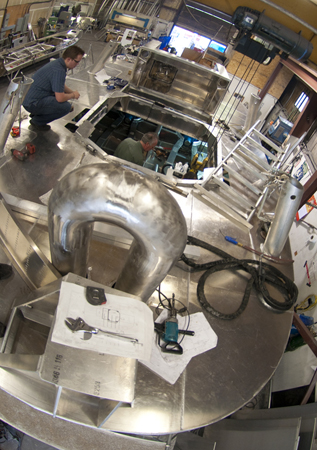 Robert Allan Ltd.’s project manager Michael Burgess explained that, “We have tried to stay all aluminum for the piping and fittings. Where that is not practical, such as the staple on the bow, we have used stainless. The engine is isolated from the aluminum with stainless shims.”