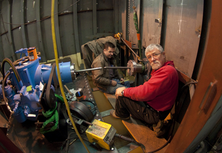 Davies wears a number of “hats” in the marine industry, and often he is aboard one of the tugs with which he has some ownership involvement. He can be found twisting wrenches in the engine room, working on deck, or in command on the bridge. Lately he has been overseeing the construction of his latest tug.