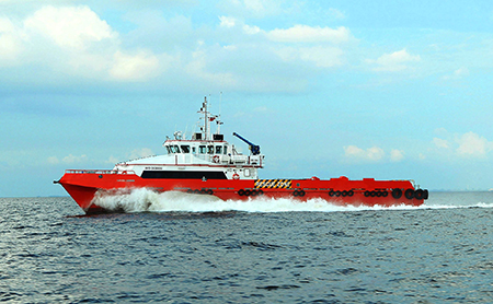 With three engines delivering a total of 4500 HP the crew boat can achieve a speed of 26 knots. Vessel name and owner has not yet been released. It is classed by Bureau Veritas.