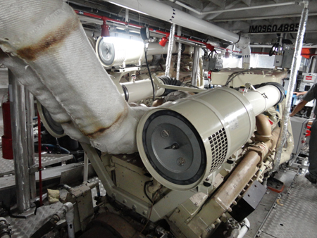 Four Cummins KTA50-M2 each delivering 1800 HP at 1900 RPM to 1.2-meter propellers through Twin Disc gears provide propulsion. A pair of Cummins-powered 99 kW generators meets the vessel’s electrical needs.